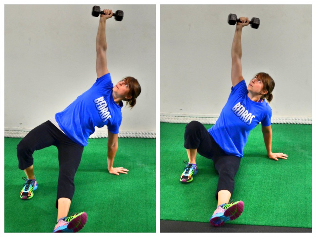 - Make sure to keep your arm fully extended overhead throughout the entire exercise.